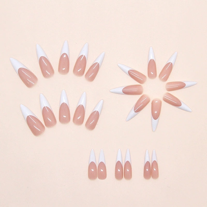N11: Press On Nails: Stiletto French Tip (24 Pcs) - With FREE glue & kit.