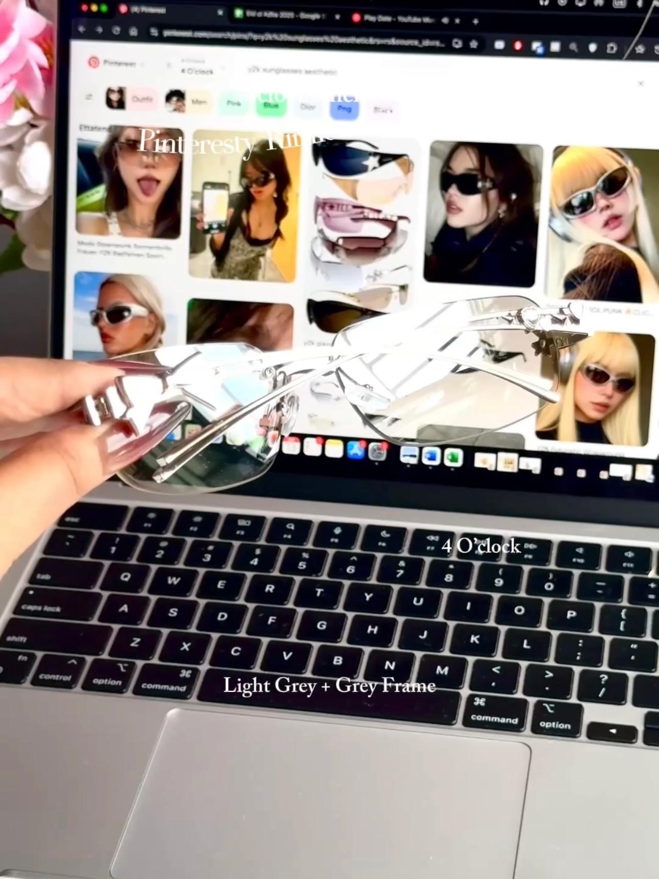 S18: Pinteresty Rimless Y2K Bow sunglasses: Light Grey + Grey (with box)
