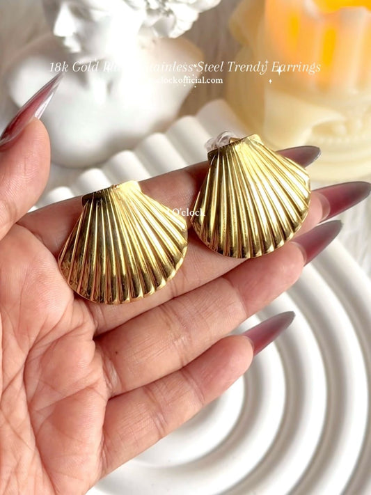 GE24: 💫Stainless Steel Earrings: Striped Scallop💫